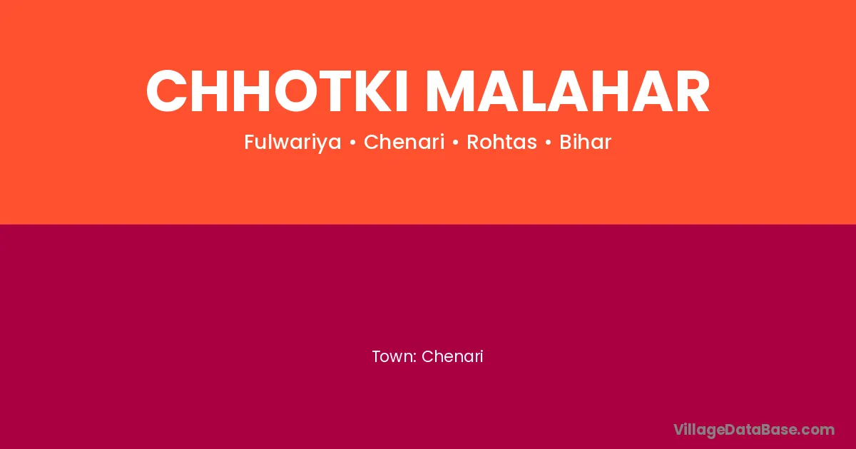 Chhotki Malahar village is located in the Chenari Subdivision of the Rohtas district in Bihar .