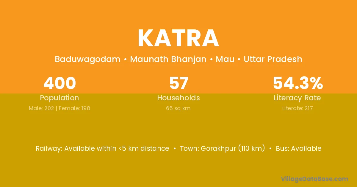 According to Census 2011 information, the village code of Katra village is 821104.