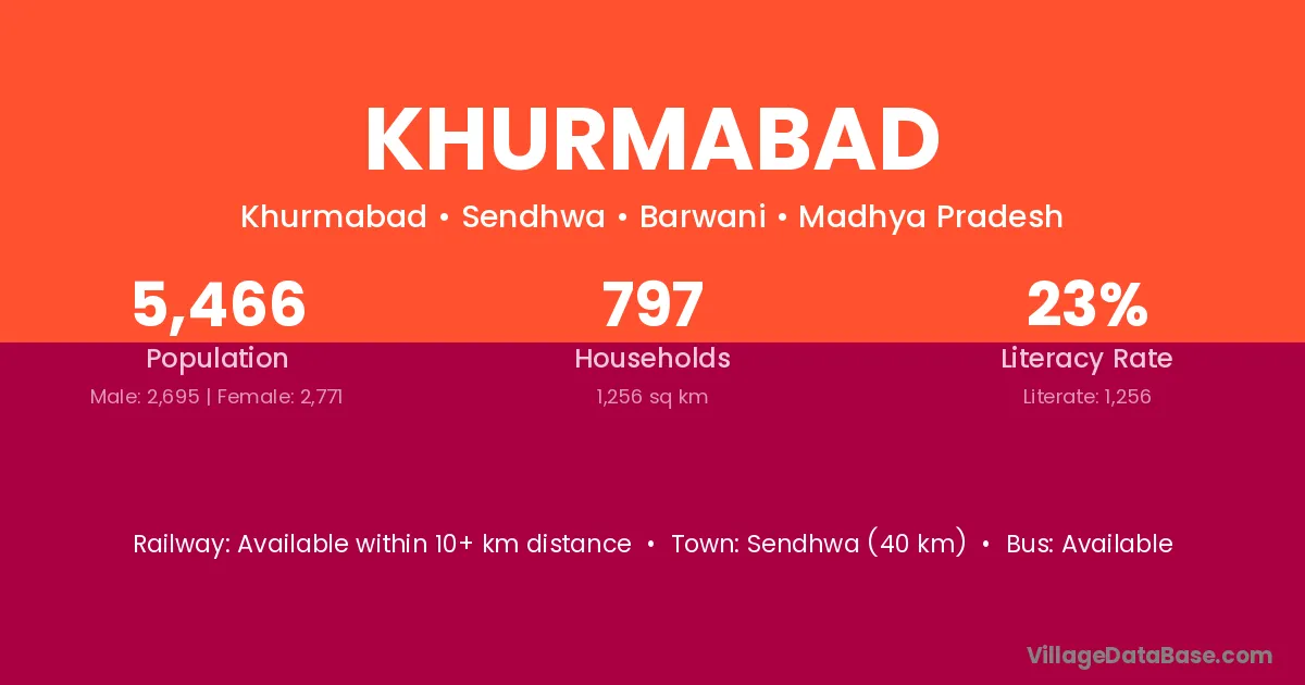 Khurmabad village has a total population of 6,555 people, of which 3,262 are males and 3,293 are females.
