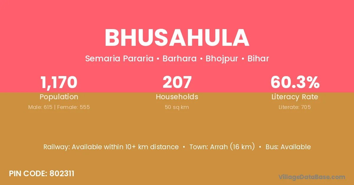 Dehri (8 km) is the nearest town to Bhusahula village for major economic activities and is located approximately 8 km away.