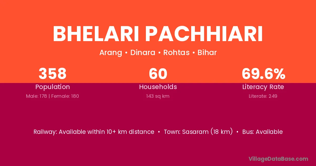 Sasaram (18 km) is the nearest town to Bhelari Pachhiari village for major economic activities and is located approximately 18 km away.