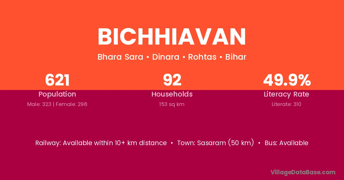 Sasaram (50 km) is the nearest town to Bichhiavan village for major economic activities and is located approximately 50 km away.
