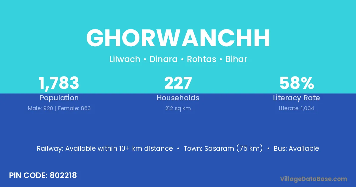 Sasaram (75 km) is the nearest town to Ghorwanchh village for major economic activities and is located approximately 75 km away.