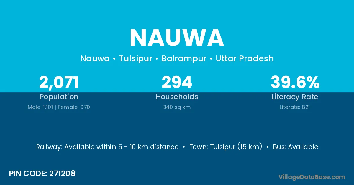 Nauwa village has a total population of 1,085 people, of which 560 are males and 525 are females.