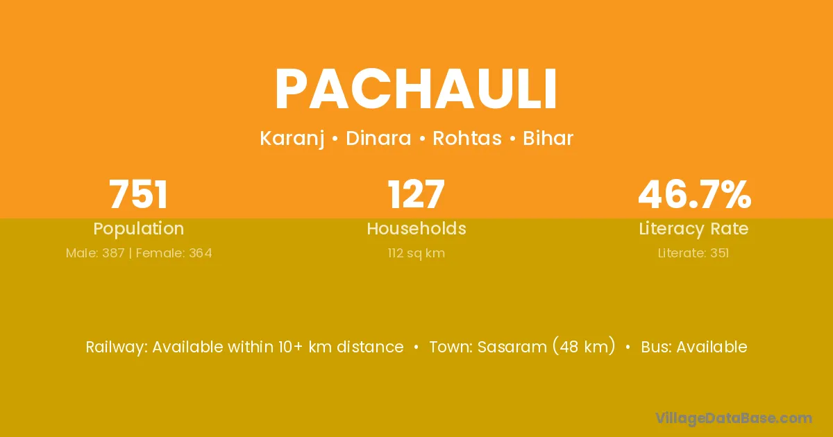 Sasaram (48 km) is the nearest town to Pachauli village for major economic activities and is located approximately 48 km away.