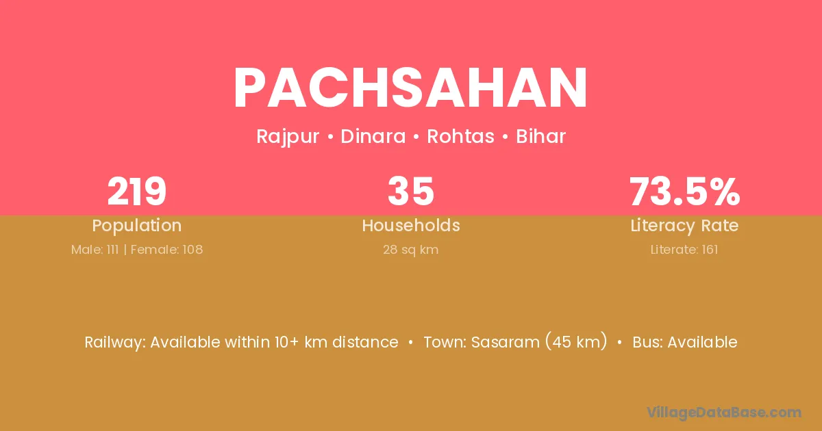 Sasaram (45 km) is the nearest town to Pachsahan village for major economic activities and is located approximately 45 km away.