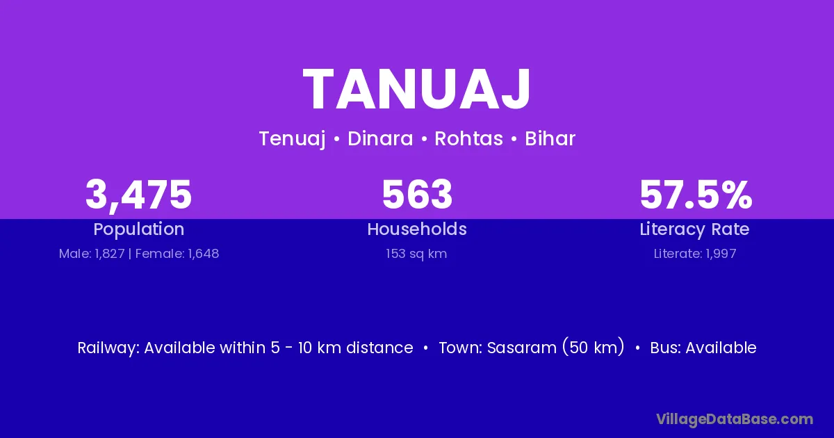 Sasaram (50 km) is the nearest town to Tanuaj village for major economic activities and is located approximately 50 km away.