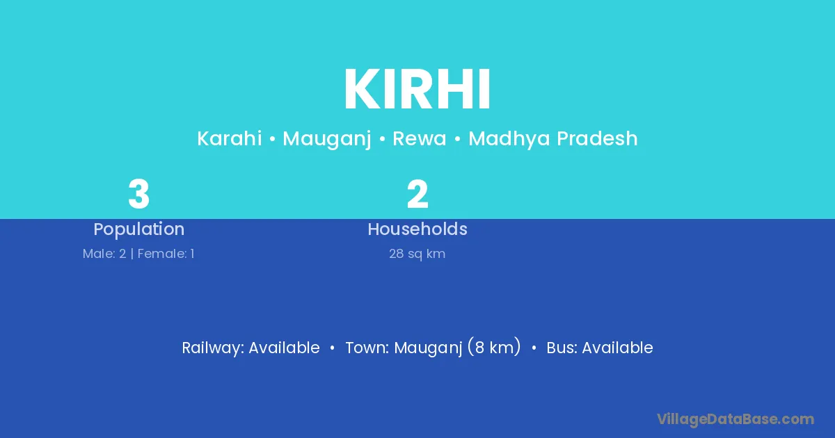 The literacy rate of Kirhi village is 60.28%. Male literacy stands at 71.00% and female literacy at 49.03%.