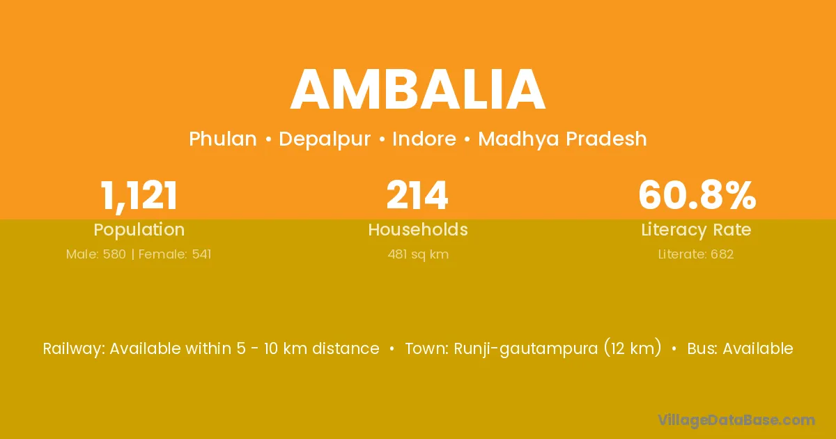 The literacy rate of Ambalia village is 61.70%. Male literacy stands at 68.30% and female literacy at 54.45%.