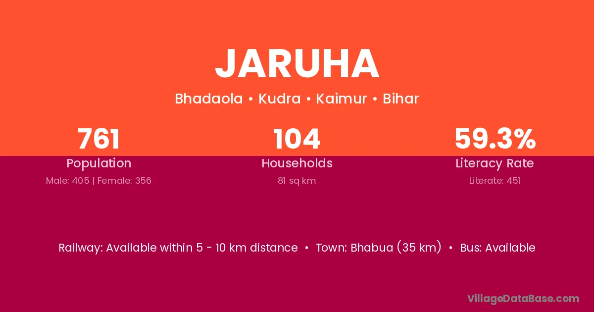 Jaruha village is located in the Kargahar Subdivision of the Rohtas district in Bihar .