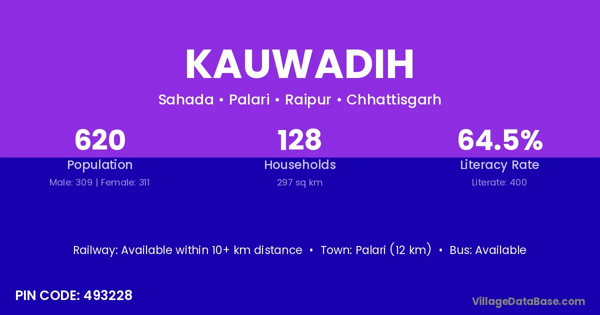 Kauwadih village has a total population of 1,204 people, of which 621 are males and 583 are females.