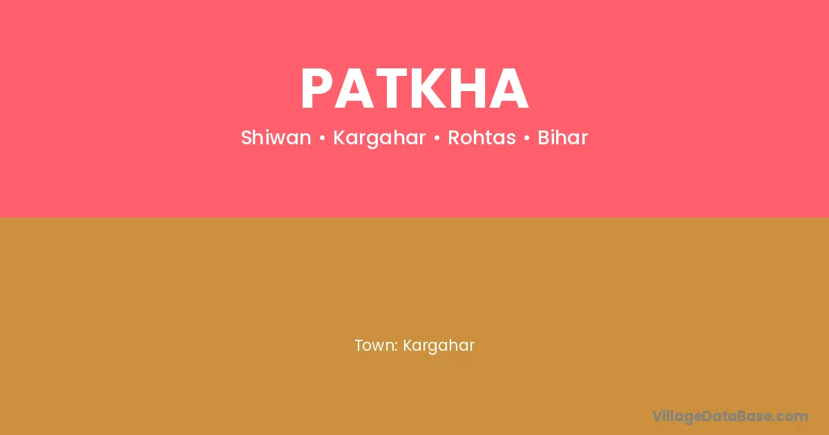 Patkha village is located in the Kargahar Subdivision of the Rohtas district in Bihar .