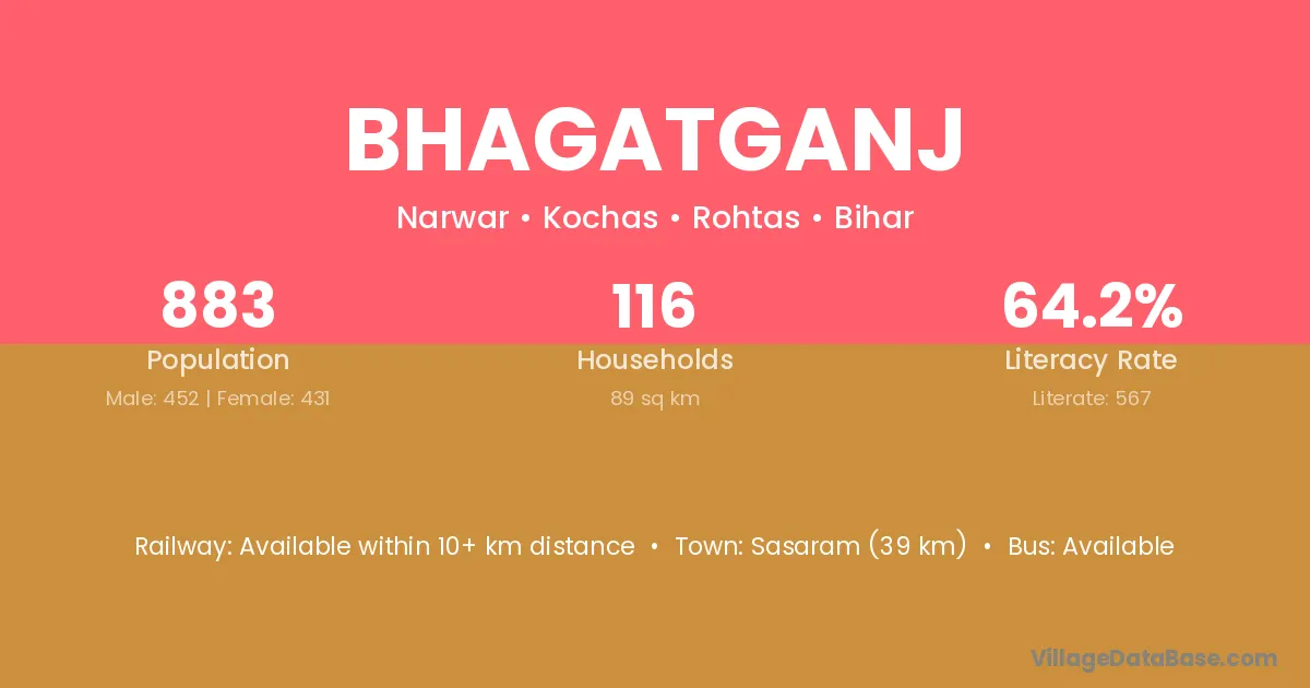 Sasaram (39 km) is the nearest town to Bhagatganj village for major economic activities and is located approximately 39 km away.