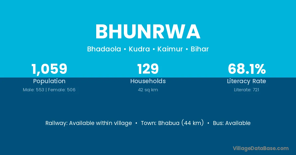Sasaram (41 km) is the nearest town to Bhunrwa village for major economic activities and is located approximately 41 km away.