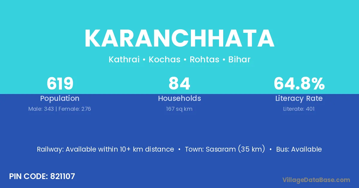 Sasaram (35 km) is the nearest town to Karanchhata village for major economic activities and is located approximately 35 km away.