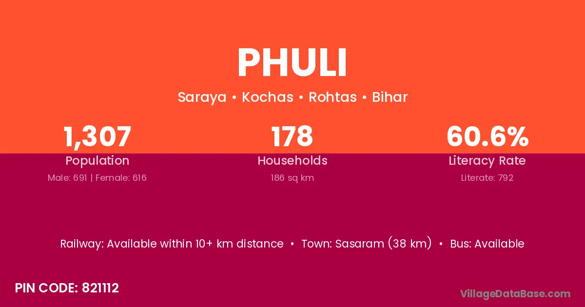 Sasaram (38 km) is the nearest town to Phuli village for major economic activities and is located approximately 38 km away.