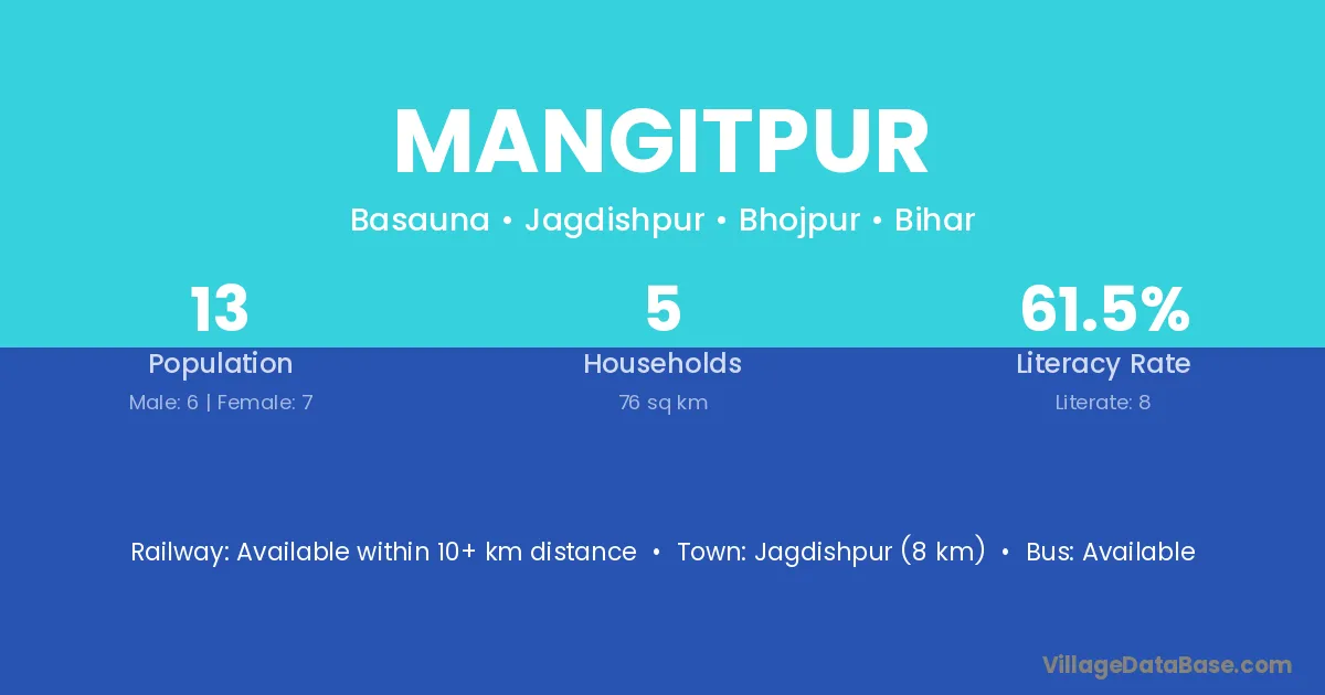 Dehri (20 km) is the nearest town to Mangitpur village for major economic activities and is located approximately 20 km away.