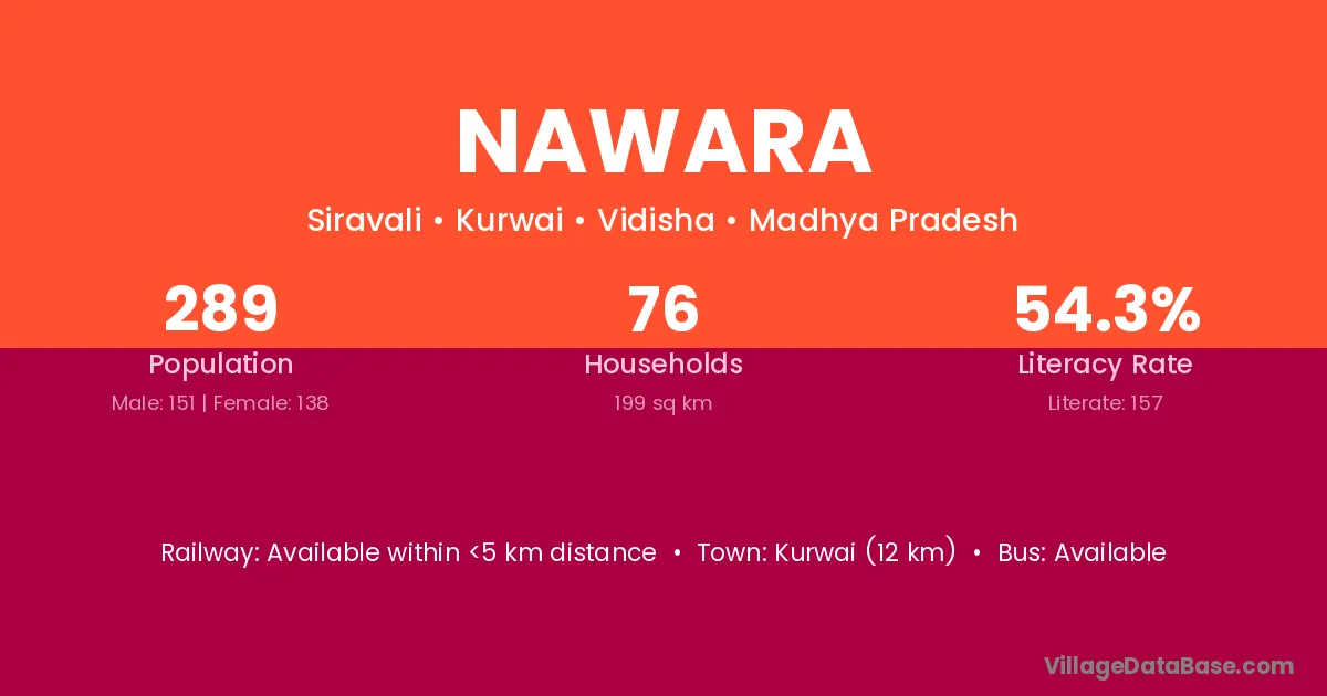 Dehri (56 km) is the nearest town to Nawara village for major economic activities and is located approximately 56 km away.