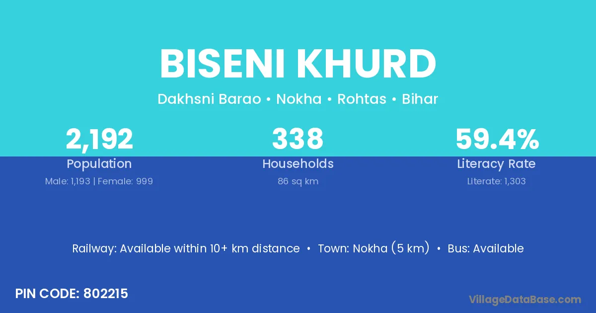 Nokha (5 km) is the nearest town to Biseni Khurd village for major economic activities and is located approximately 5 km away.
