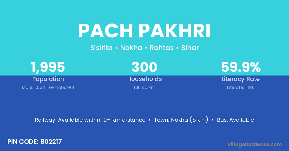 Pach Pakhri village has a total population of 1,995 people, of which 1,034 are males and 961 are females.