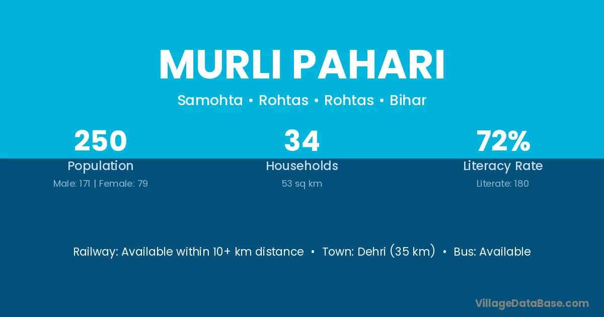 Dehri (35 km) is the nearest town to Murli Pahari village for major economic activities and is located approximately 35 km away.