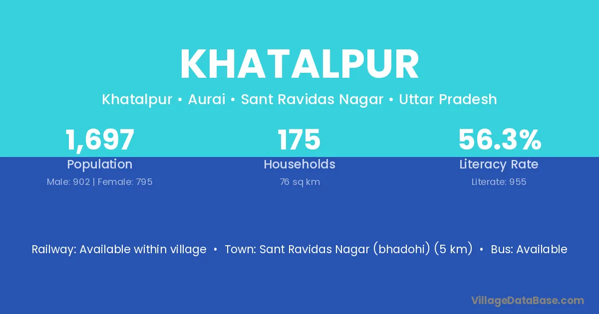 The literacy rate of Khatalpur village is 66.15%. Male literacy stands at 74.01% and female literacy at 57.20%.