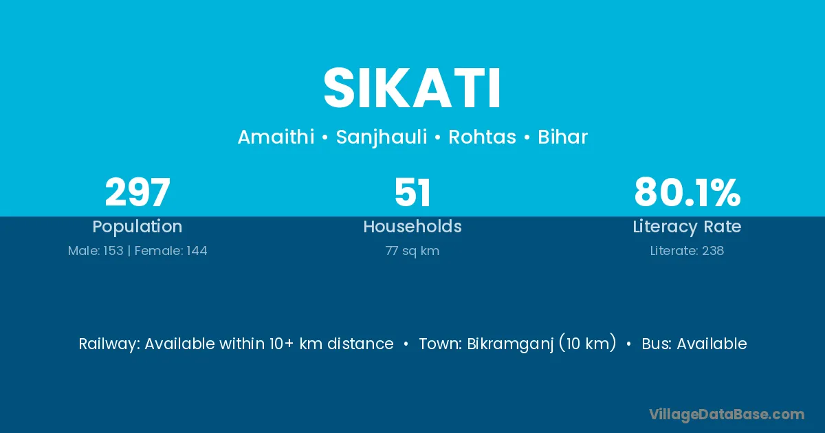 Bikramganj (10 km) is the nearest town to Sikati village for major economic activities and is located approximately 10 km away.