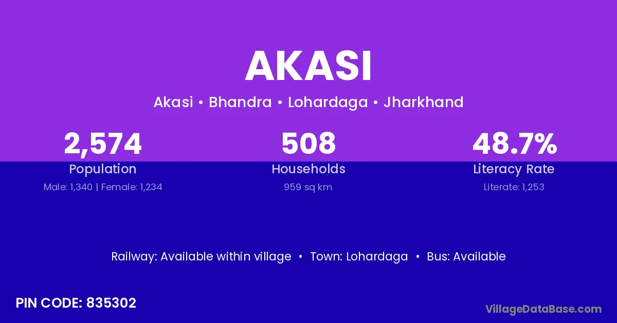 Sasaram (6 km) is the nearest town to Akasi village for major economic activities and is located approximately 6 km away.