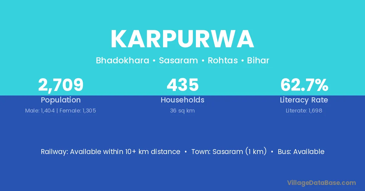 Sasaram (1 km) is the nearest town to Karpurwa village for major economic activities and is located approximately 1 km away.