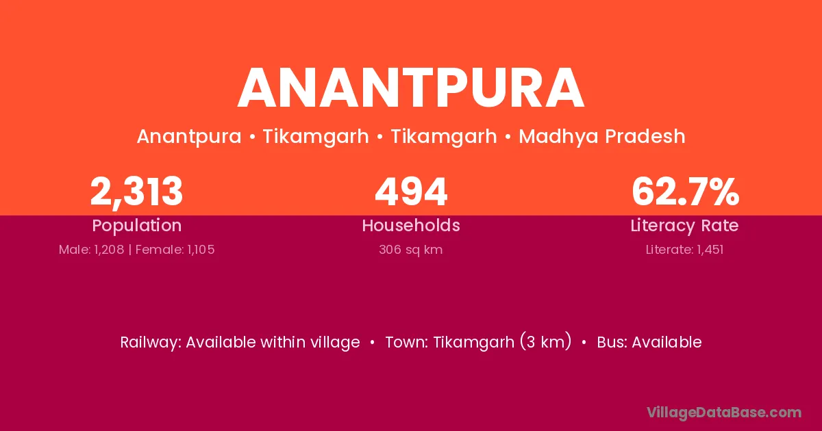 Anantpura village has a total population of 430 people, of which 220 are males and 210 are females.