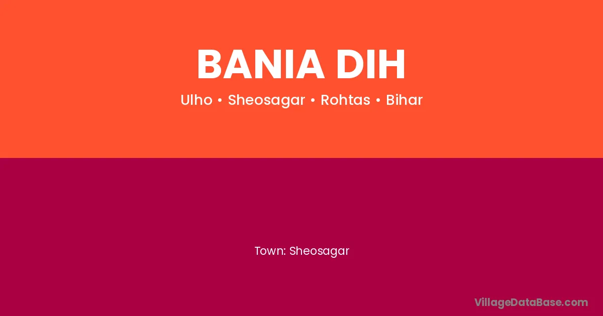 Bania Dih village is located in the Sheosagar Subdivision of the Rohtas district in Bihar .