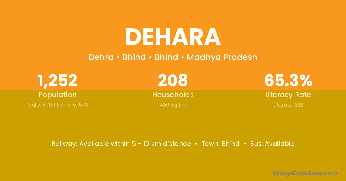 Dehara village has a total population of 878 people, of which 450 are males and 428 are females.