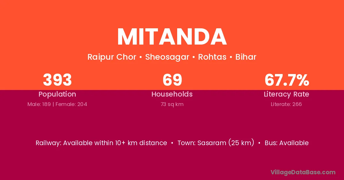 Sasaram (25 km) is the nearest town to Mitanda village for major economic activities and is located approximately 25 km away.