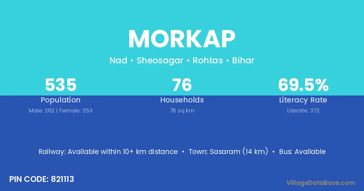 Sasaram (14 km) is the nearest town to Morkap village for major economic activities and is located approximately 14 km away.