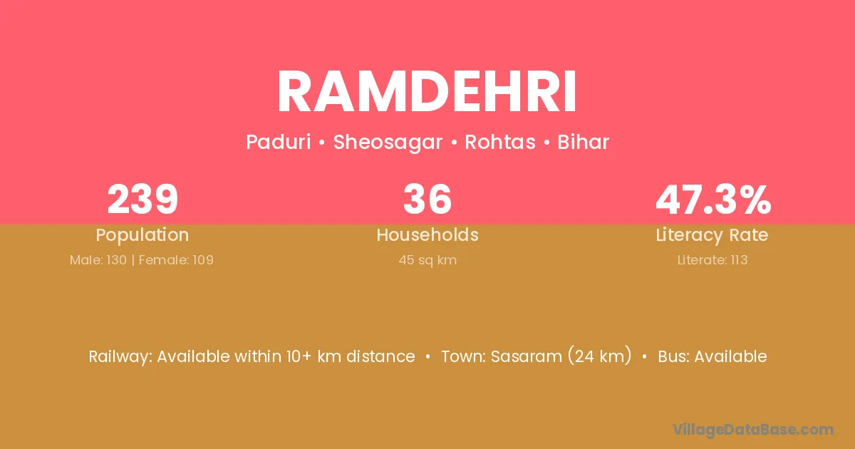 Sasaram (24 km) is the nearest town to Ramdehri village for major economic activities and is located approximately 24 km away.