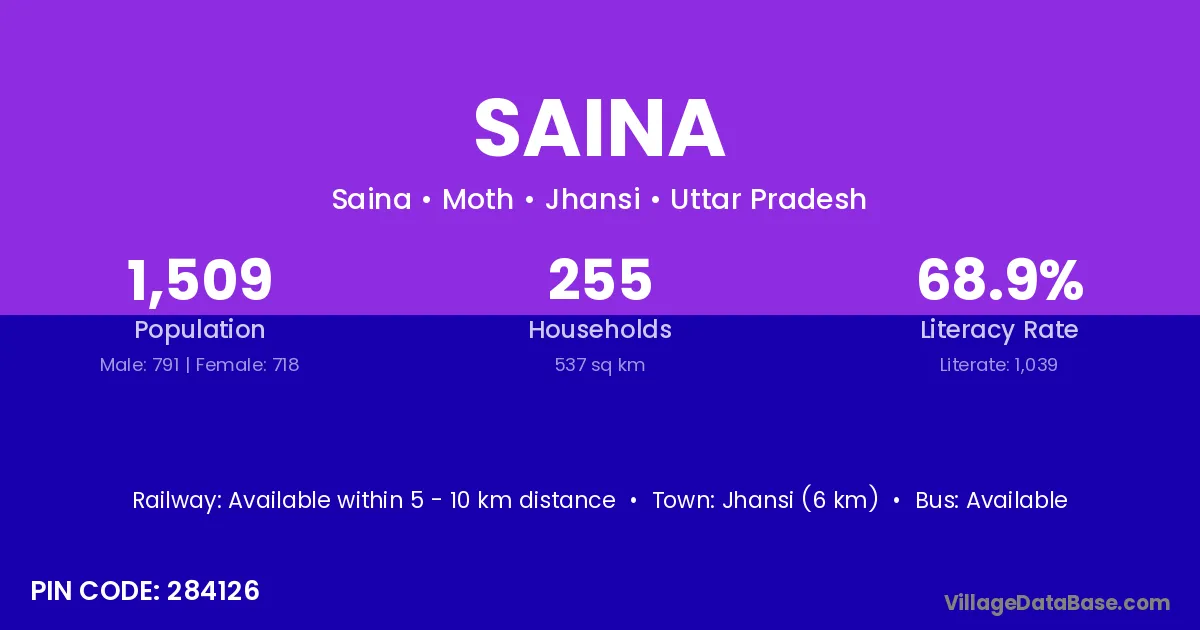 Saina village has a total population of 1,146 people, of which 609 are males and 537 are females.