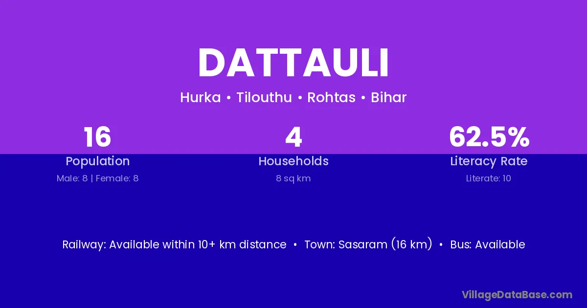 Sasaram (16 km) is the nearest town to Dattauli village for major economic activities and is located approximately 16 km away.