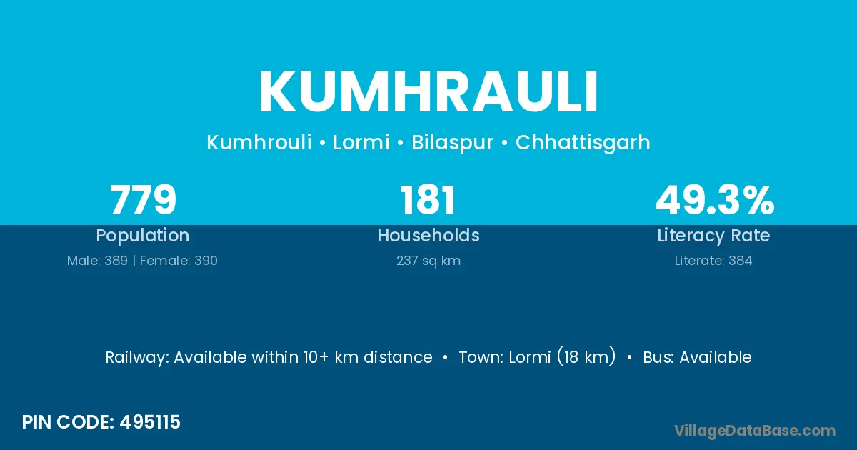 Kumhrauli village has a total population of 1,552 people, of which 787 are males and 765 are females.