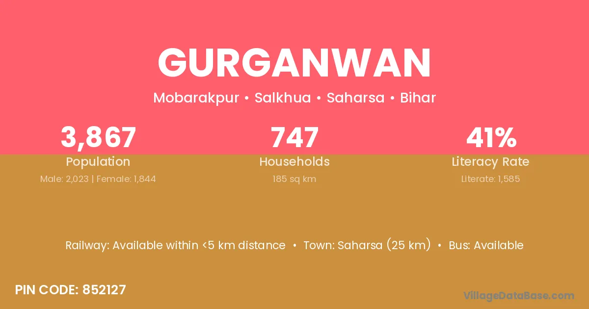Saharsa (25 km) is the nearest town to Gurganwan village for major economic activities and is located approximately 25 km away.