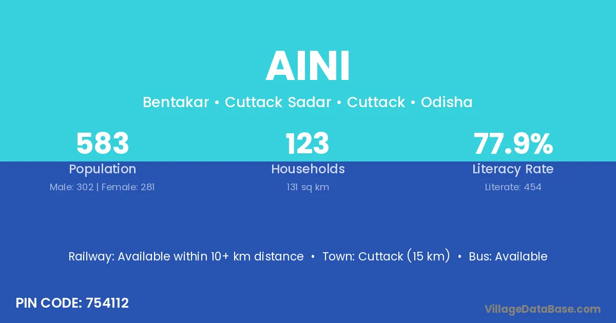 Aini village has a total population of 1,543 people, of which 824 are males and 719 are females.