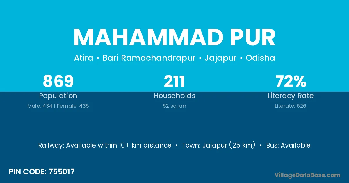 Saharsa (22 km) is the nearest town to Mahammad Pur village for major economic activities and is located approximately 22 km away.