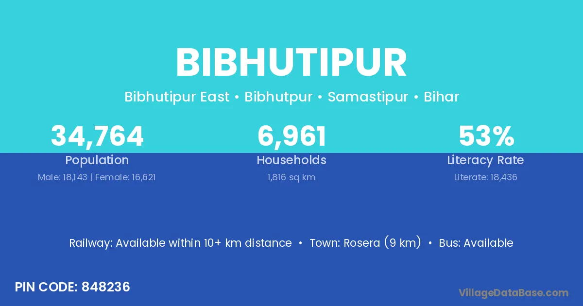 Rosera (9 km) is the nearest town to Bibhutipur village for major economic activities and is located approximately 9 km away.