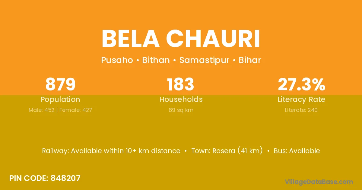 Bela Chauri village has a total population of 879 people, of which 452 are males and 427 are females.