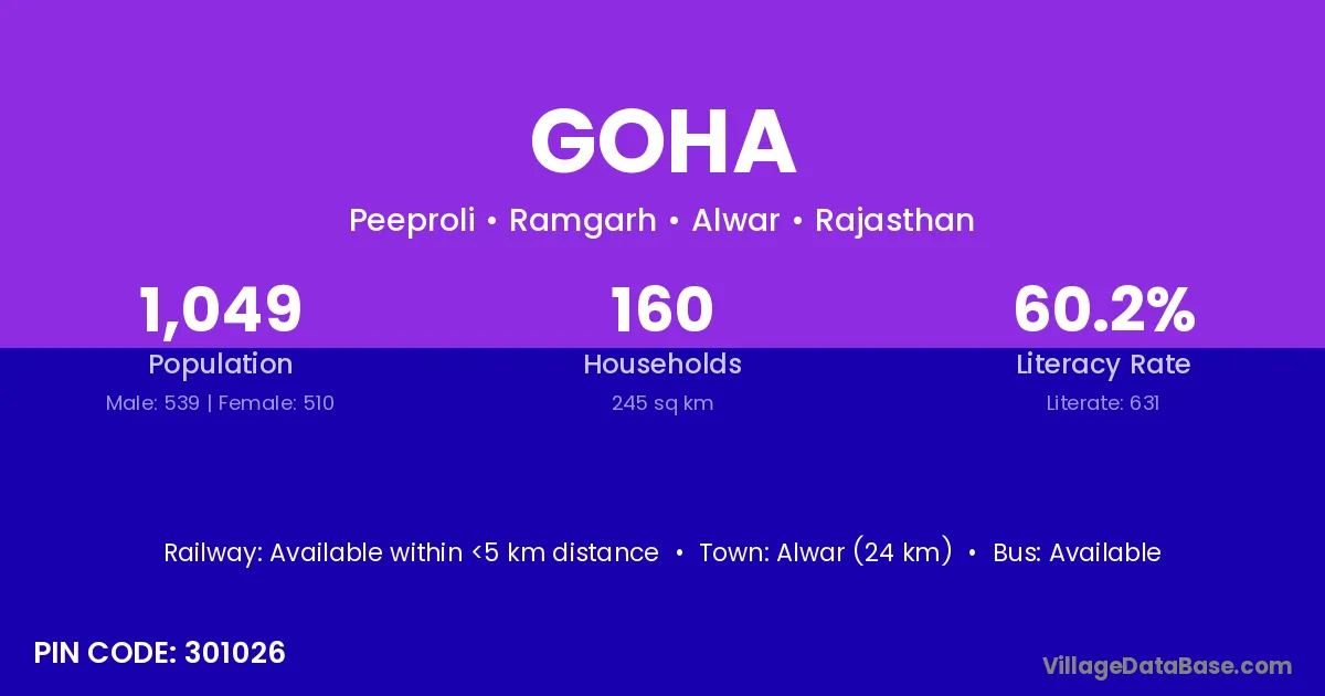 Rosera (20 km) is the nearest town to Goha village for major economic activities and is located approximately 20 km away.