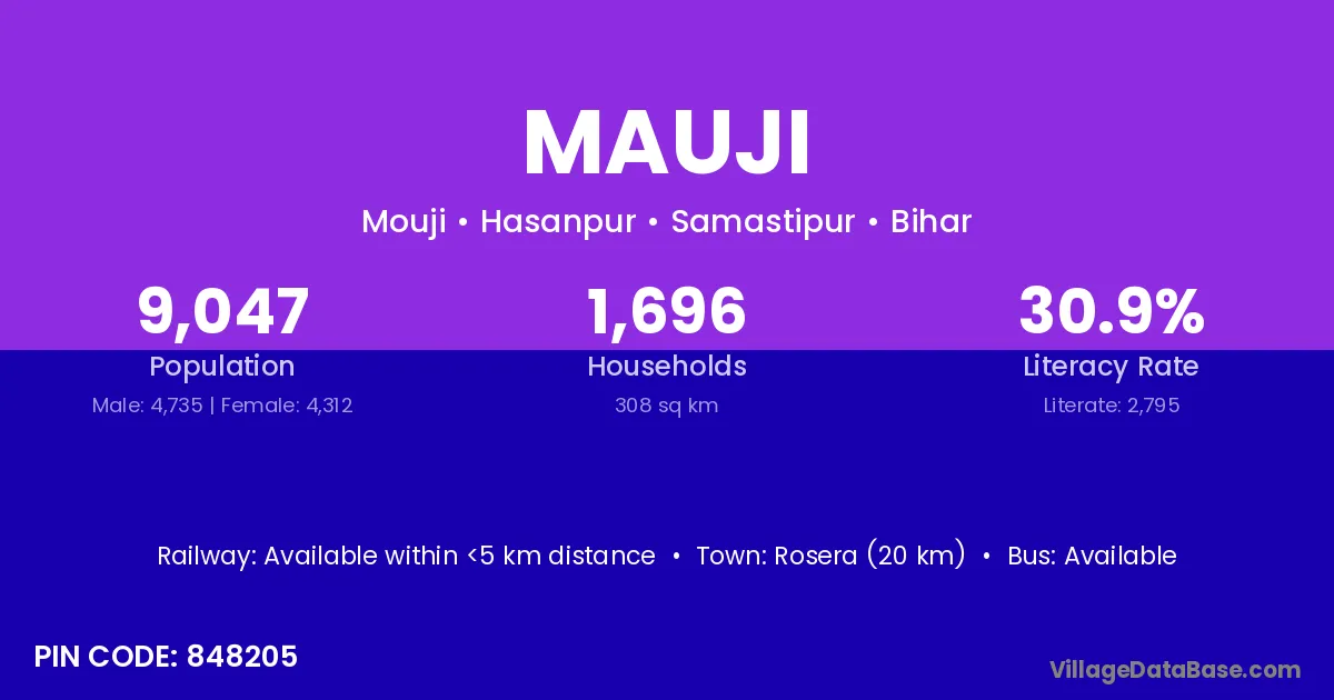 Mauji village has a total population of 9,047 people, of which 4,735 are males and 4,312 are females.