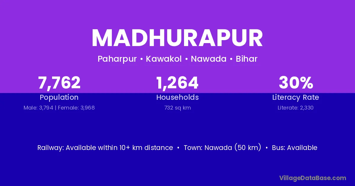 Samastipur (19 km) is the nearest town to Madhurapur village for major economic activities and is located approximately 19 km away.