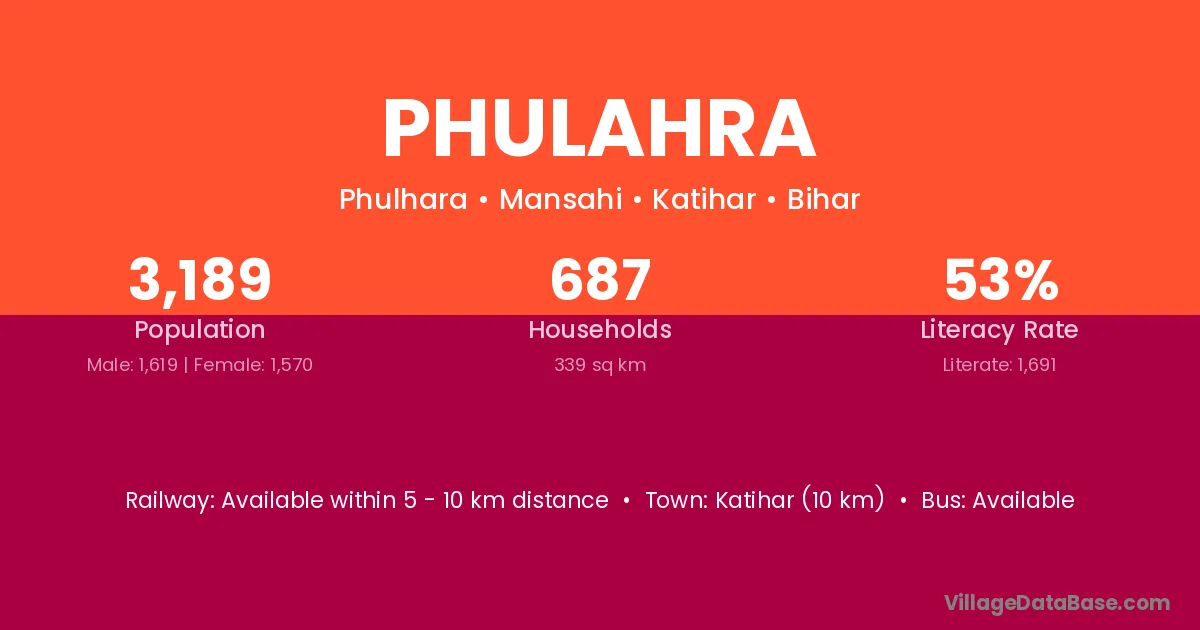 Samastipur (14 km) is the nearest town to Phulahra village for major economic activities and is located approximately 14 km away.