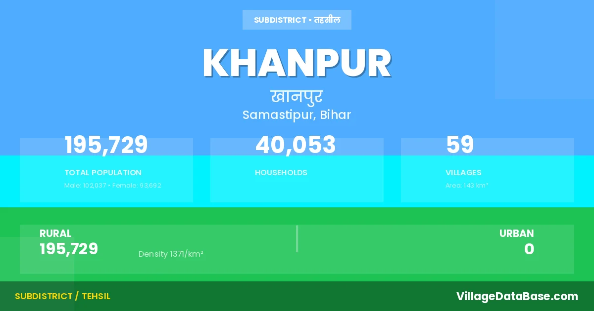 Khanpur is a town and Subdivision in the Samastipur district of the Bihar. In India, a Subdivision is a subdivision of a district responsible for the administration and revenue collection of a specific area within the district. Subdivisions play a crucial role in the local governance structure, contributing significantly to the development and administration of their communities.