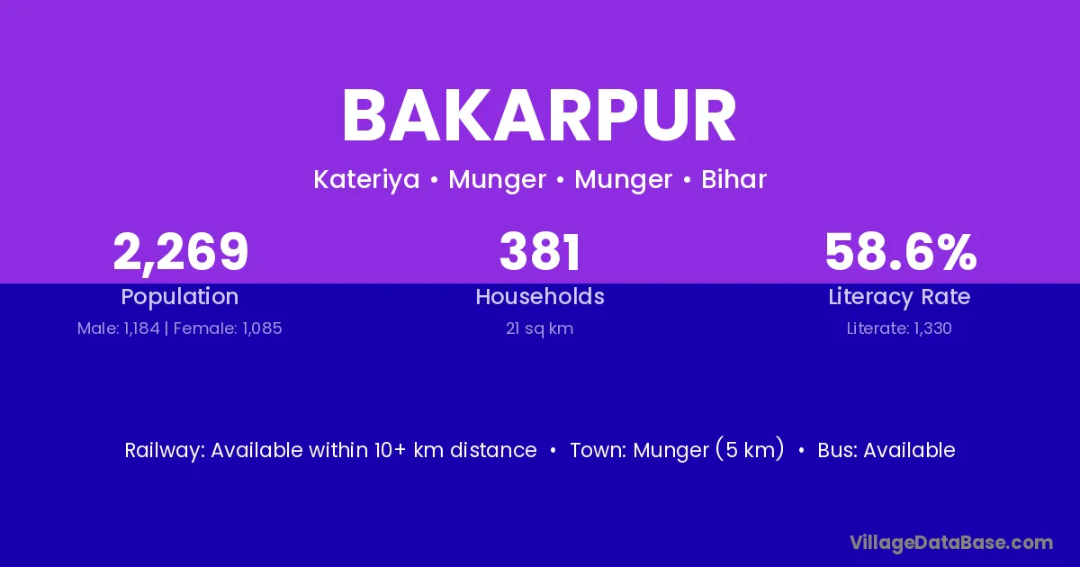 Samastipur (62 km) is the nearest town to Bakarpur village for major economic activities and is located approximately 62 km away.