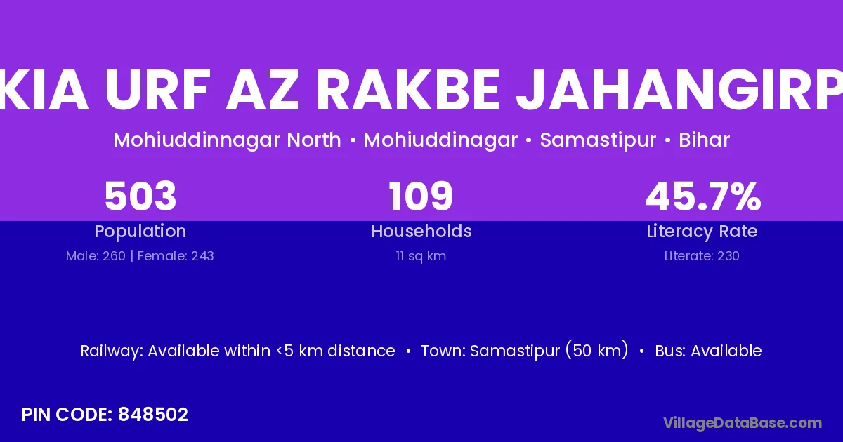 Takia Urf Az Rakbe Jahangirpur village has a total population of 503 people, of which 260 are males and 243 are females.